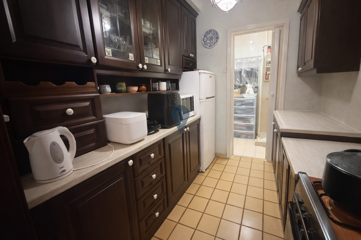A town house upon entrance is a living area the a room with stairs for upstairs and under stairs was transformed into another small living area with a small bar, then leads to a dinning area, kitchen and toilet and at the back a yard, up stairs are two bedrooms one of which with a balcony and the other with a small kitchenet and an ensuite, and stairs to the roof