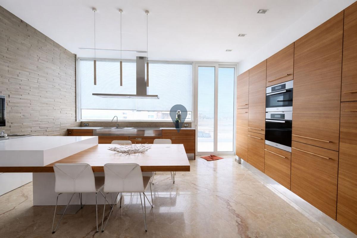 A defining feature of this residence is the expansive wrap-around terrace, ideal for entertaining, outdoor dining, and enjoying open views and sunsets in complete privacy.