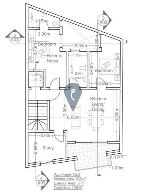 This second floor Apartment consists of an open-plan kitchen/living/dining space, a spacious front terrace, two double bedrooms, two bathrooms (one of which is an ensuite), and a study room.
