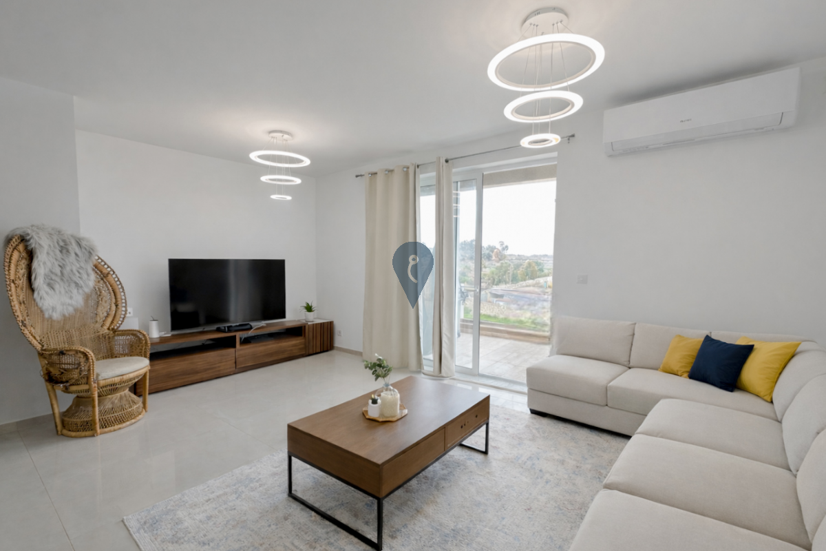XGHAJRA - In a quiet residential area of the town, one is welcomed by this third-floor apartment facing ODZ views. The property has been finished and furnished in beginning 2025 and it is being offered fully furnished as seen in the pictures. This unit consists of three double bedrooms, two bathrooms and an open-plan kitchen/living/dining leading to a front terrace facing ODZ views and ideal for entertainment. This property is also fully air-conditioned, has lift from ground floor and an optional two car garage at an extra cost.