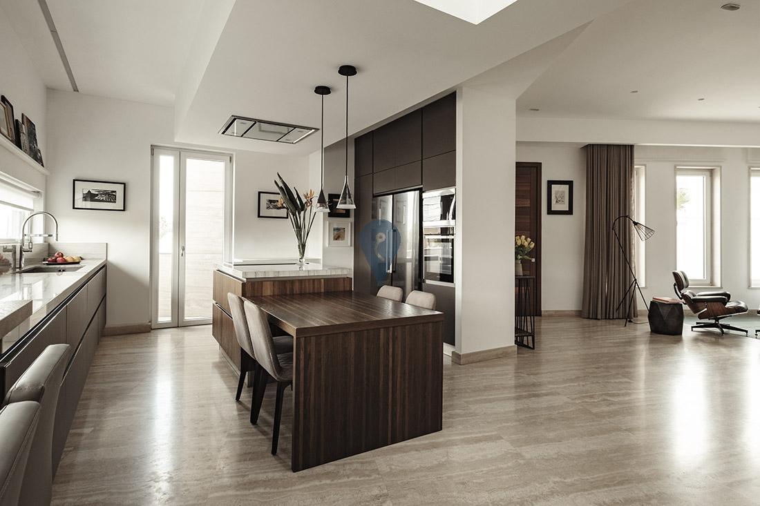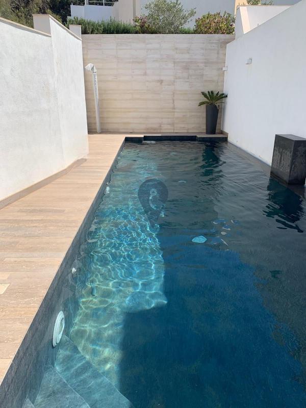 SAN PAWL TAT-TARGA - This distinctive semi-detached corner residence is thoughtfully designed to maximise space while creating a dynamic interplay of light and shadow. Its innovative inverted layout positions the bedrooms on the lower levels—keeping them naturally cooler during summer and easier to warm in winter—while the main living spaces are elevated above. These upper levels open onto an outdoor terrace, pool deck, and lap pool, creating an ideal setting for relaxation and entertaining. The home showcases a refined palette of materials, including marble, granite, concrete, perforated steel, and bamboo, creating a rich and contemporary aesthetic. Carefully positioned double-glazed apertures take full advantage of the East–West orientation, allowing natural light to animate the interiors throughout the day. A striking six-metre picture window in the west-facing kitchen frames sunset views, while a central courtyard draws daylight deep into the lower levels, reducing the need for artificial lighting.
