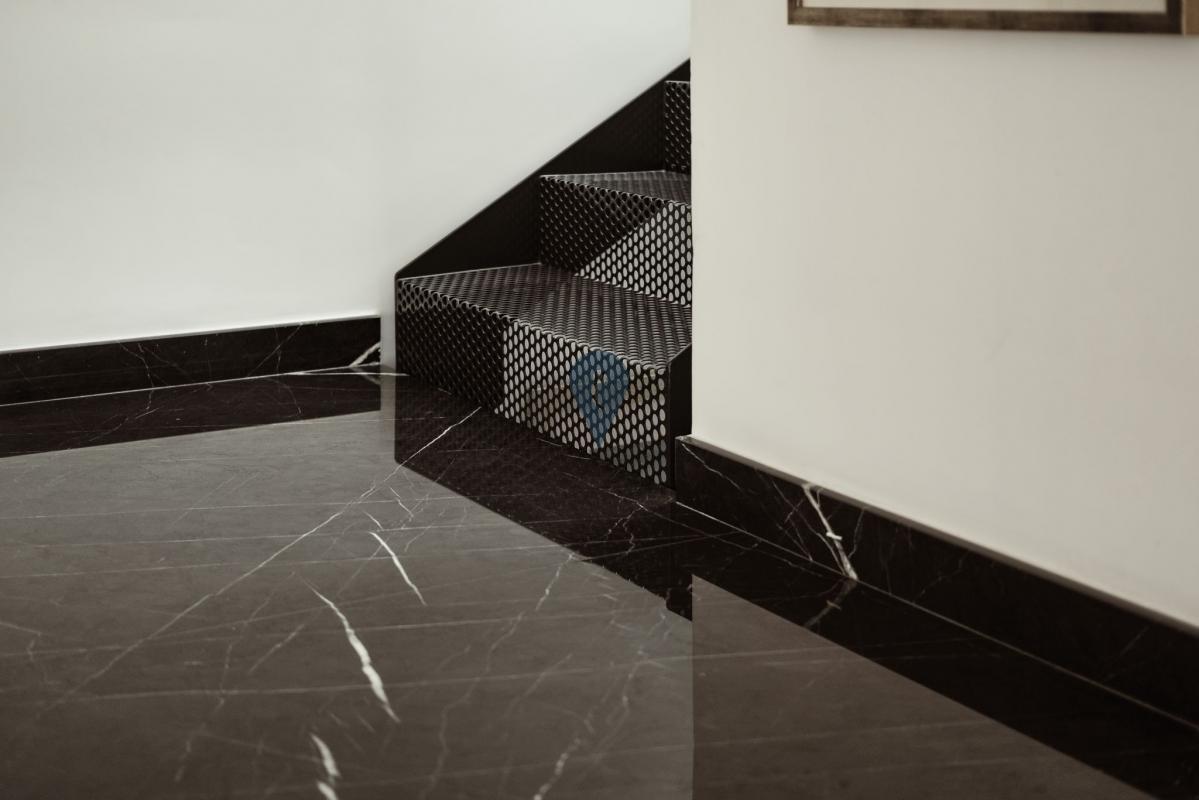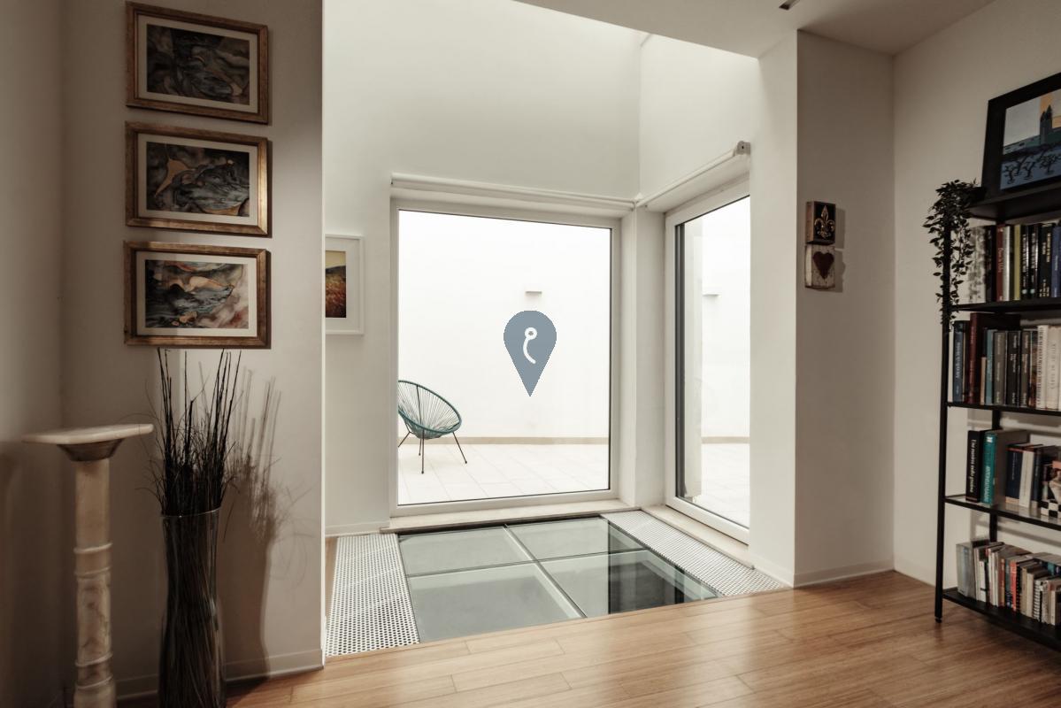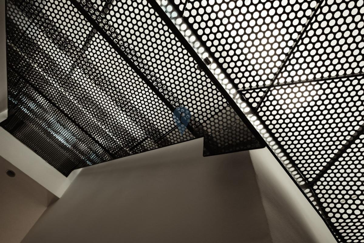 Sustainability is at the heart of the design. Energy-efficient features include a solar chimney, 18 high-performance photovoltaic panels, and a fully insulated building envelope, contributing to the home’s net-zero energy performance. A dramatic three-storey light well channels natural light down to the basement level while also supporting passive cooling. As warm air rises and escapes through operable openings at the glazed top, cooler air is drawn through the basement and circulated upward, naturally cooling the living spaces during hot Maltese summers.