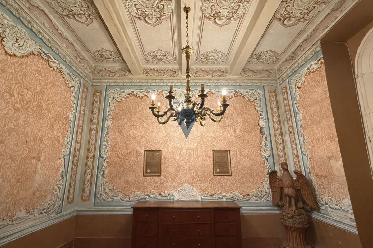 Internally, the property retains a striking sense of heritage, with an imposing entrance, a beautiful original staircase, painted and decorative ceilings, patterned floor tiles, and a series of grand rooms filled with period detail. The adjoining townhouse adds further flexibility, with a layout that includes two bedrooms, one bathroom, and a roof terrace over the garage, making it ideal as guest accommodation, independent living space, or as part of a wider unified residence.