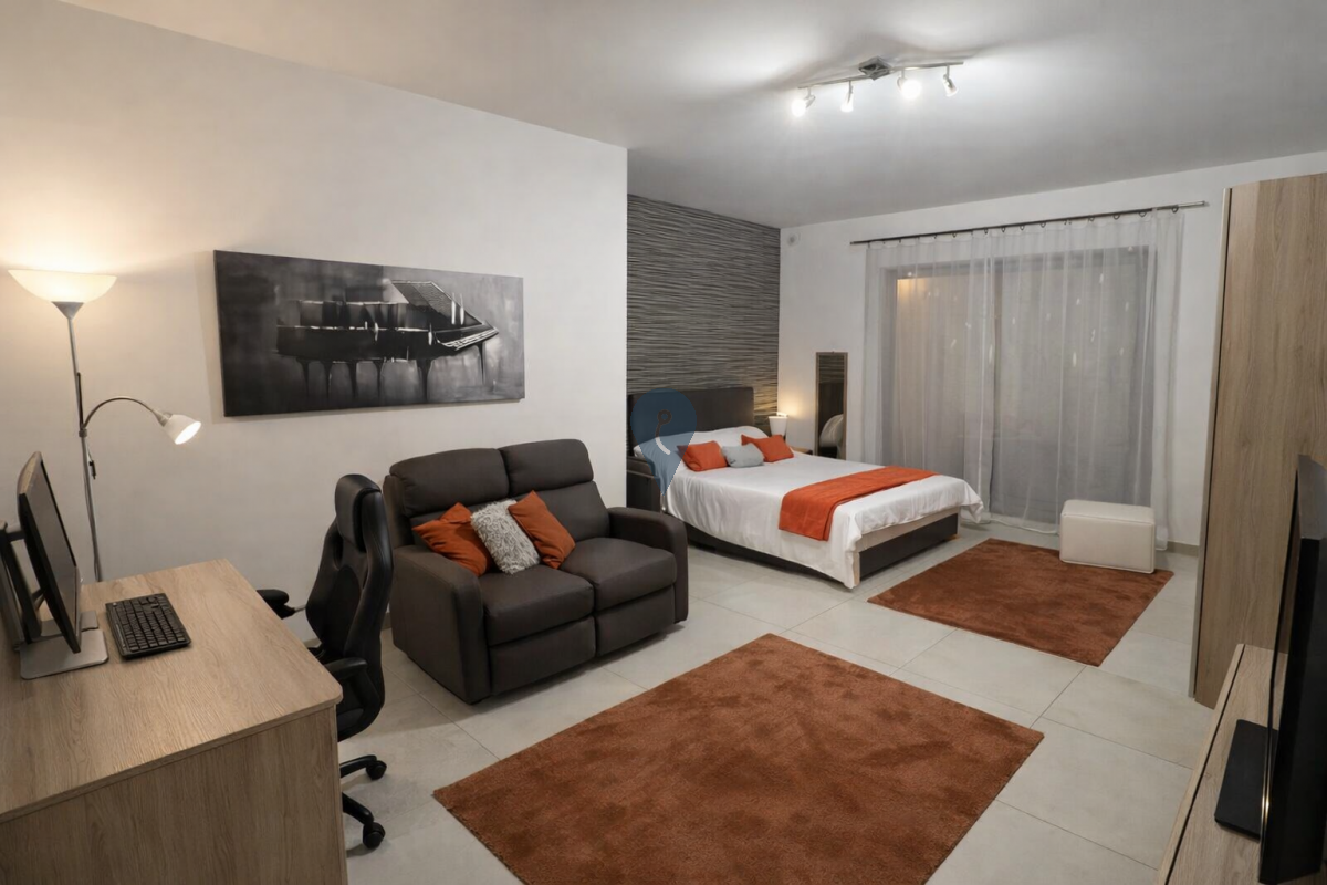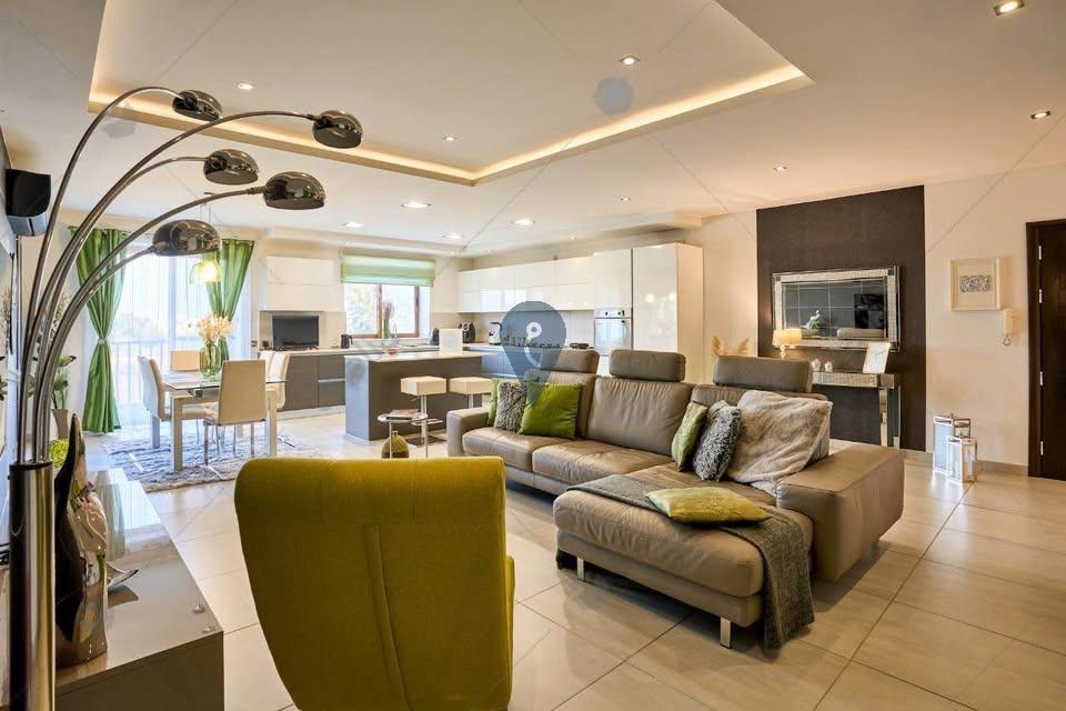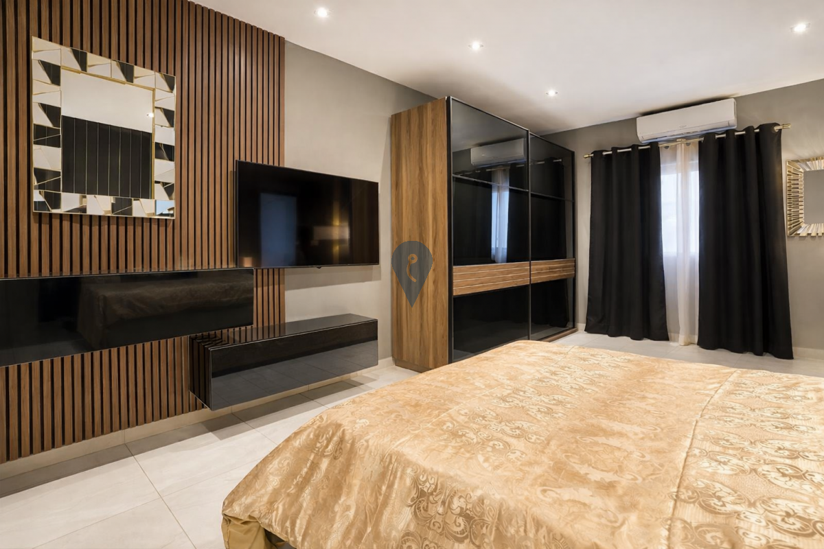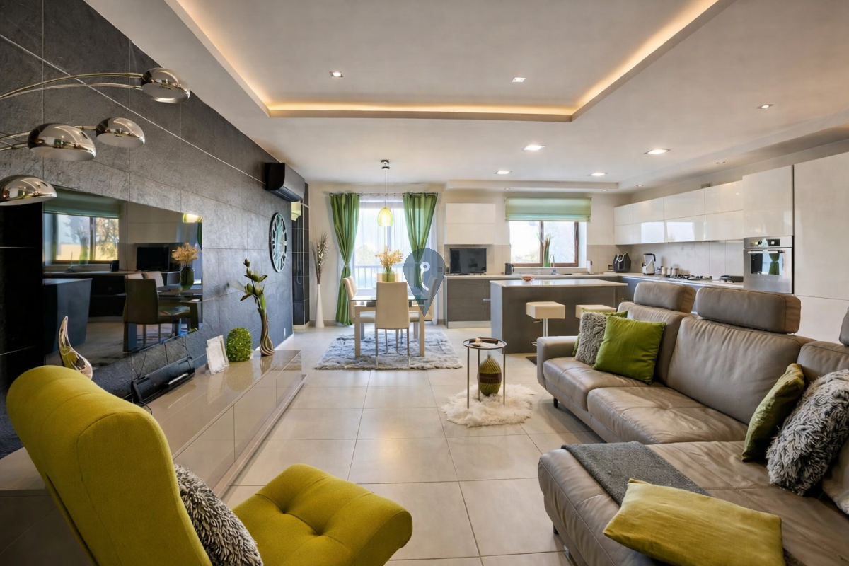 FGURA – New to the market, this over 220sqm second-floor apartment is set in a quiet block of only 5 units served with a lift, located on the outskirts of Fgura facing Smart City. Boasting a bright, squarish layout filled with natural light, the property features an impressive 60sqm+ open plan kitchen, living, and dining area leading to a large front terrace enjoying 180° open country (ODZ) views, perfect for entertaining. The layout includes three extra-large double bedrooms (one currently used as a fully equipped gym), a huge 37sqm master bedroom with ensuite and walk-in (currently used as a utility room), a spacious main bathroom, and a back terrace with a small washroom. The property is being offered fully designer furnished, including 5 AC units, a new Samsonite e-smart fireplace, and built-in appliances. The master bedroom can easily be converted into two double bedrooms, and thanks to its layout, the property also offers the potential to be divided into two separate two-bedroom units with independent entrances, making it an excellent home plus rental investment opportunity.