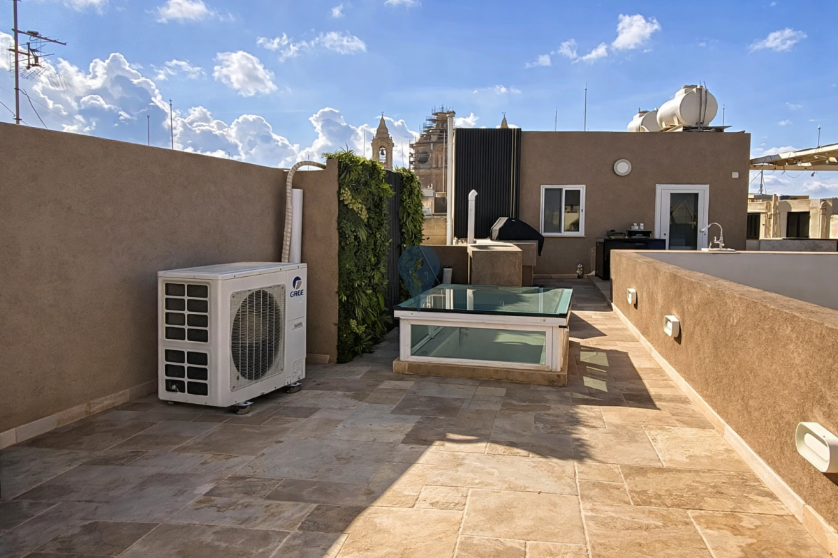 At roof level, a large terrace with a dedicated barbecue area provides the ideal space for entertaining and relaxing, making it perfect for hosting family and friends.
