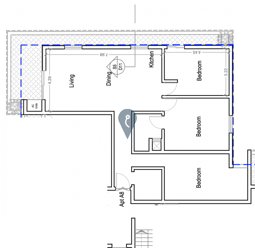 A key highlight of this apartment is its corner balcony, allowing for abundant natural light and offering a pleasant outdoor space for relaxation or entertaining.