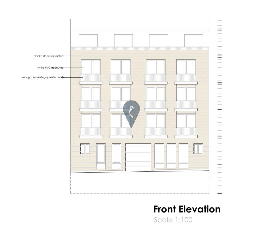 The property comprises a bright open plan kitchen, dining and living area leading onto a back terrace with distant sea views, three bedrooms, two bathrooms, and a front terrace. Being offered in advanced shell form, the property includes installed double-glazed apertures, tiled terraces, railings, front door, and finished common parts. The block is also served with a lift. A finishing package is available on request, while optional basement garages are also available. Freehold.
