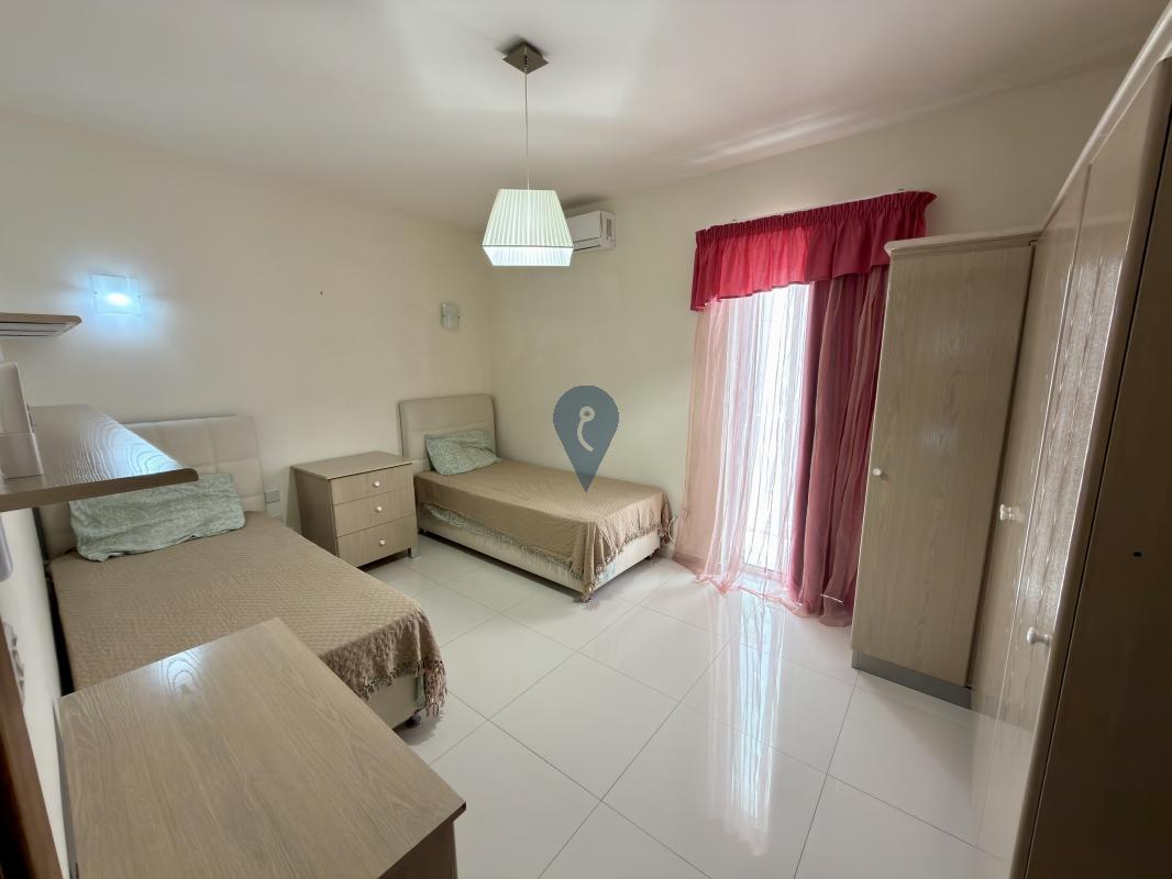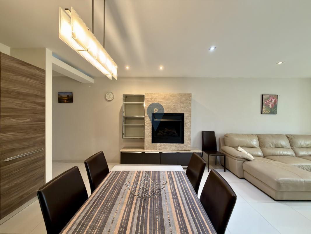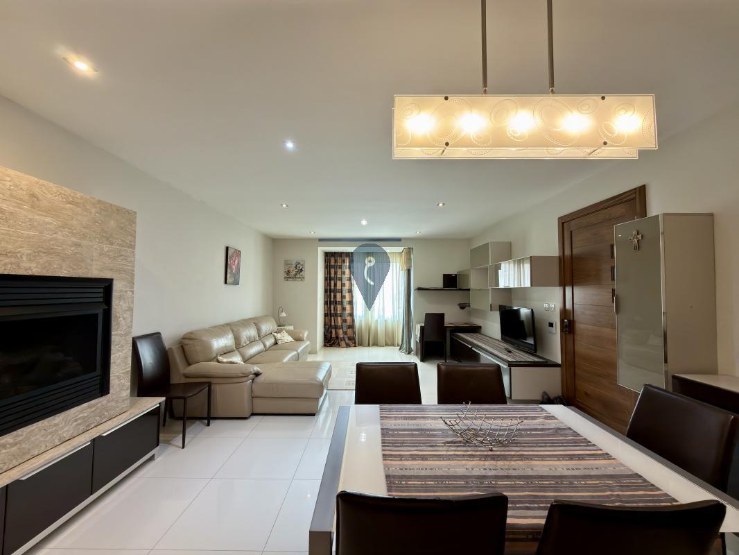 Second-floor apartment in Naxxar, part of a small block of four units, offering three bedrooms and two bathrooms (one en-suite). Fully furnished and equipped with quality finishes throughout, featuring a spacious open-plan living, kitchen, and dining area filled with natural light.
