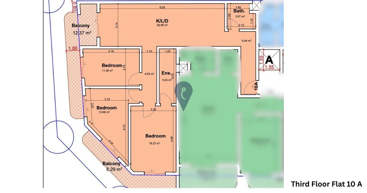 This well-designed third-floor corner apartment offers bright and spacious accommodation. At its centre is a generous open-plan kitchen, living, and dining area extending to approximately 30 m², creating a welcoming space for both everyday life and entertaining, with direct access to a private 12 m² terrace. The property comprises of three well-proportioned bedrooms, including a spacious main bedroom, a second bedroom with access to an additional balcony, and a third bedroom. The apartment is further enhanced by two bathrooms, including a main bathroom and a convenient en-suite, while a central hallway ensures a practical and efficient flow throughout. As a corner unit, the apartment benefits from enhanced natural light and a greater sense of privacy, making it a comfortable and versatile home in an elevated third-floor setting.