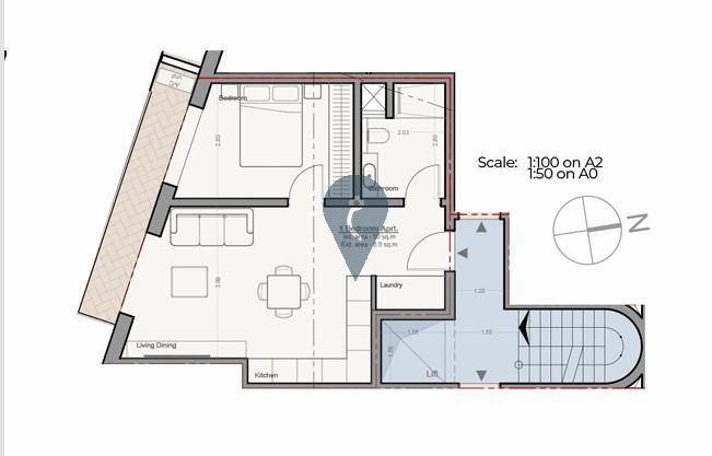 Xghajra - 1 Bedroom apartment located close to all amenities, situated on the 2nd floor. The apartment consists of a kitchen and dining area, a living area complemented by a balcony, a main bathroom, and a laundry area. It will be sold in shell form with an option to be finished. The apartment offers ODZ views, and the completion date is August 2027.