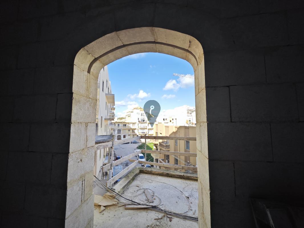 MARSALFORN, Gozo - Located just steps from the picturesque Marsalforn Bay, this newly constructed fifth-floor apartment in Gozo is offered in shell form and is easily accessible by both lift and staircase. The layout includes a bright, open-plan kitchen, living, and dining area that opens onto a terrace, a main bathroom, a spacious double bedroom, and an additional area that can be converted into a second bedroom. Large windows fill the rooms with natural light, creating a welcoming and airy ambiance. Residents will appreciate the convenience of having essential amenities such as restaurants, bars, supermarkets, pharmacies, and public transport all within walking distance.