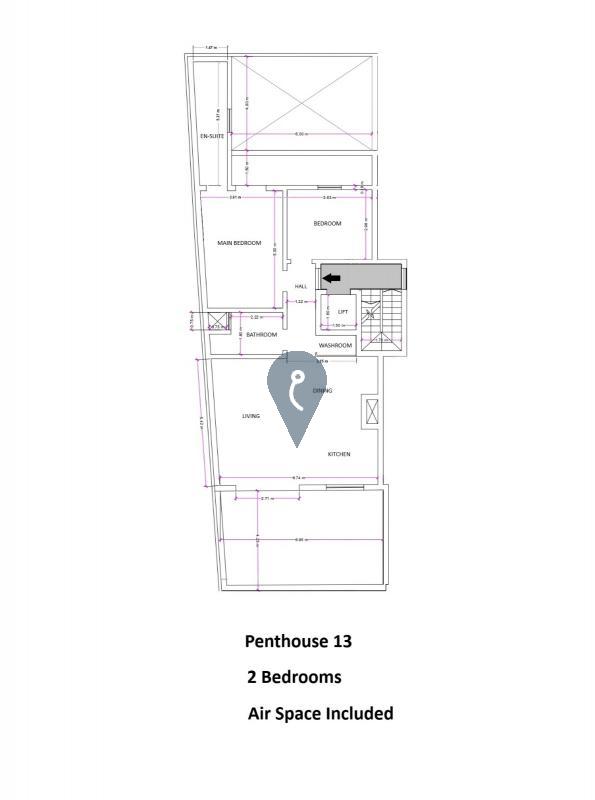 Birkirkara- Comes this penthouse set on the outskirts of Birkirkara just off balzan, One finds a large open plan with kitchen/dining and living area leading to the front terrace having a good outdoor area for relaxation and BBQs , 1 double bedroom with ensuite and a walk in wardrobe, another bedroom, main bathroom and a laundry too. Both bedrooms have a back balcony aswell. Airspace is included in the price. Also there are 3 optional garages starting from 95k