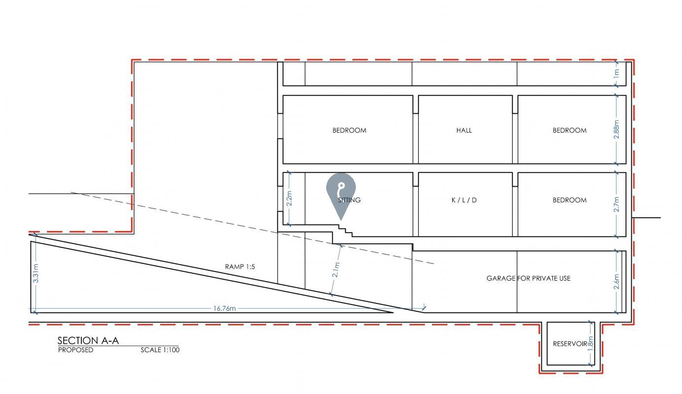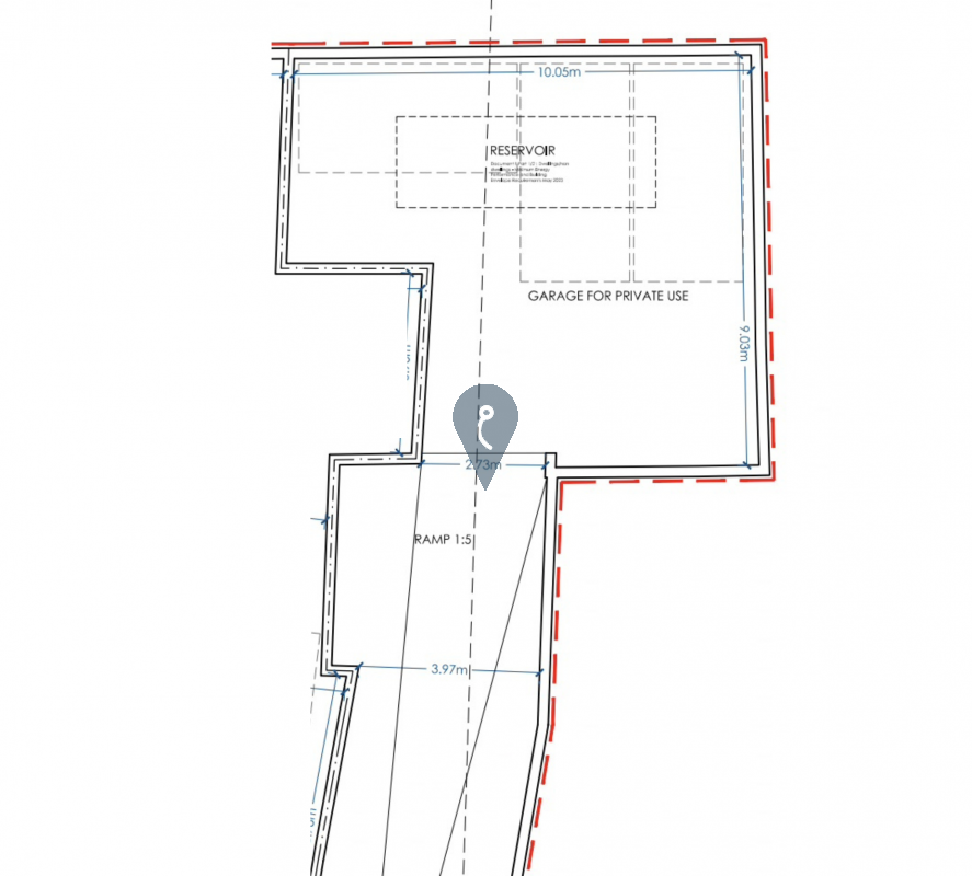 At basement level, the property includes a large garage and reservoir.