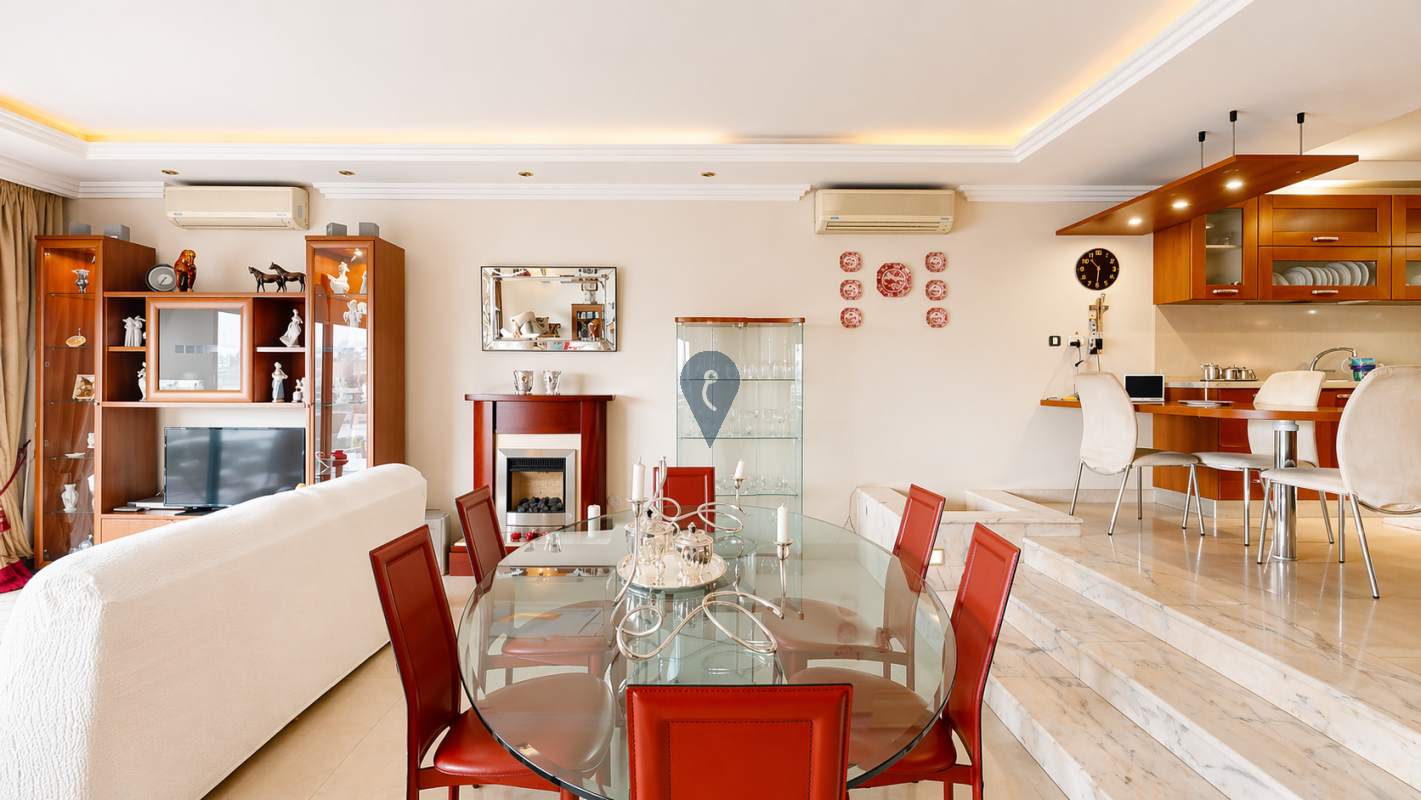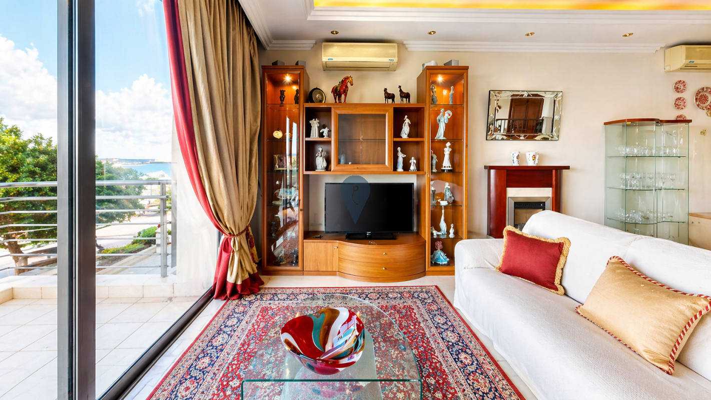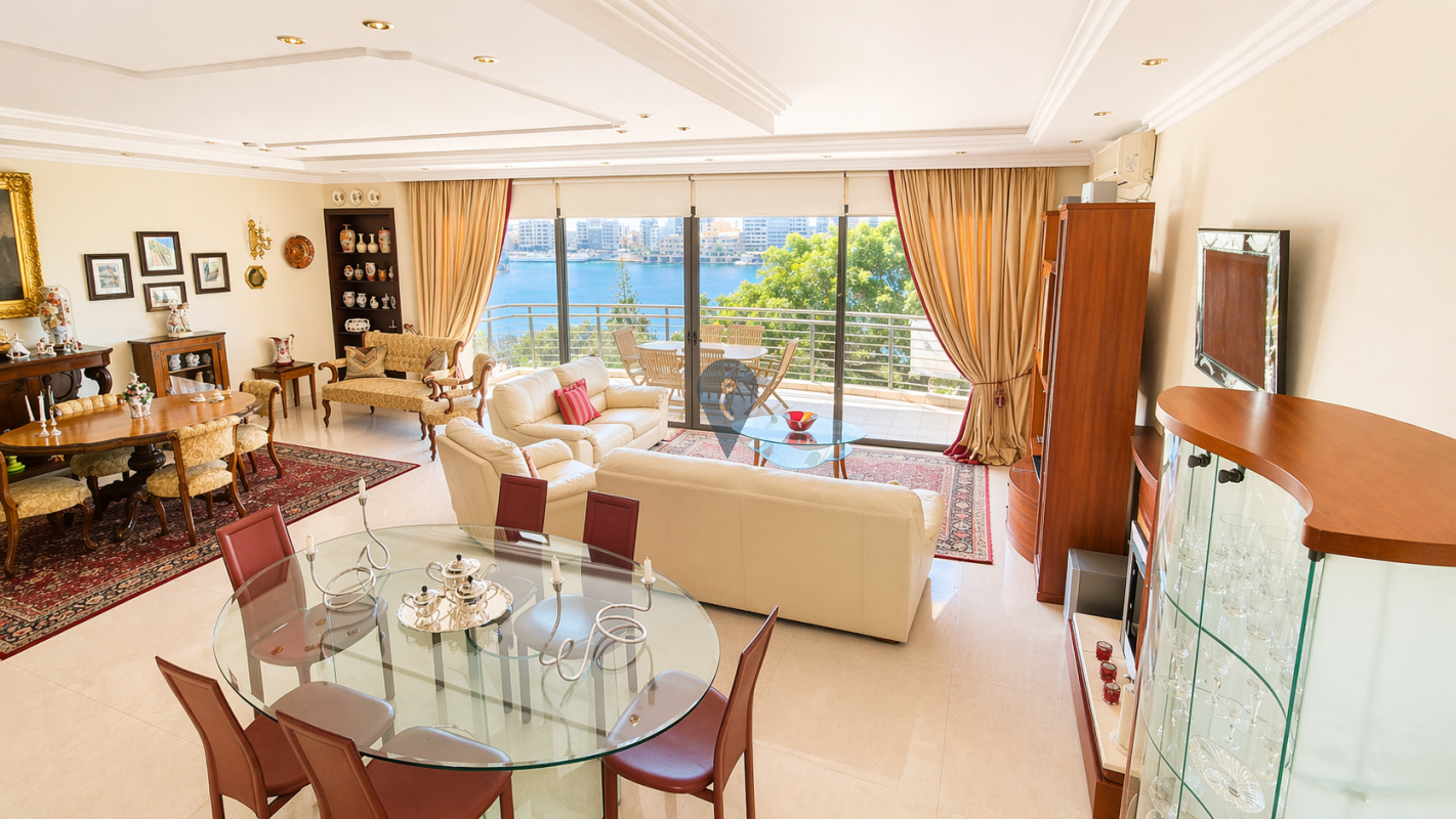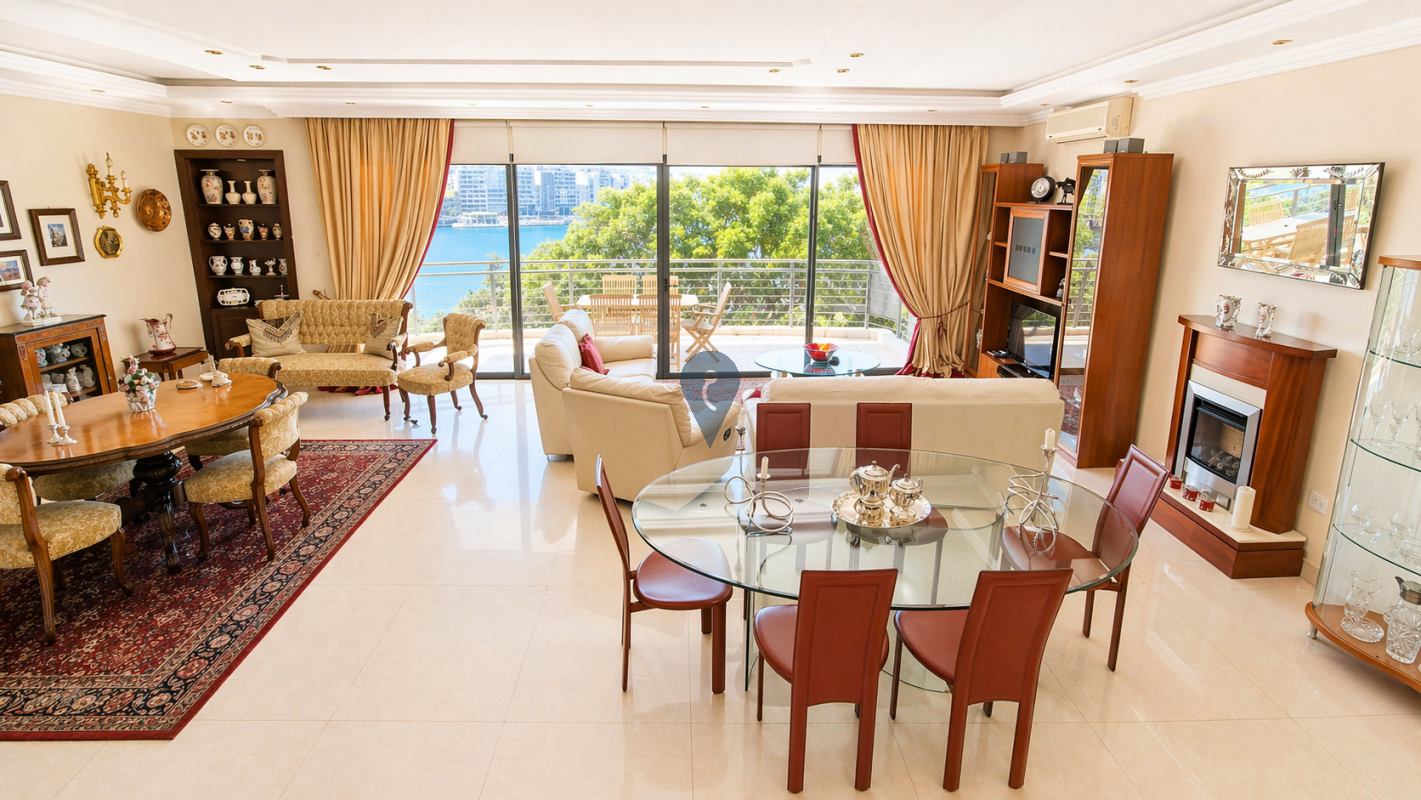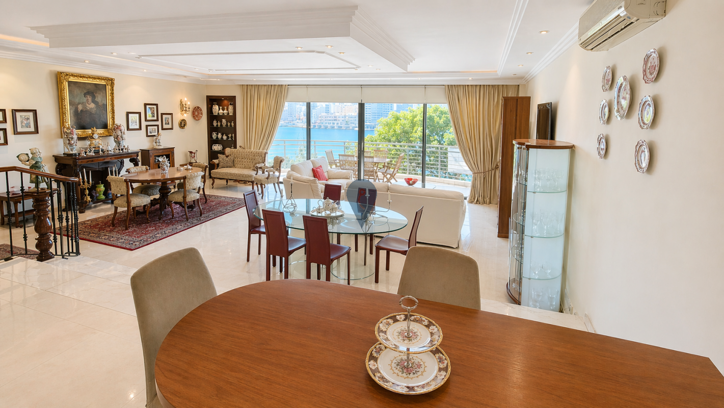 SLIEMA Seafront – A generously proportioned 195sqm seafront apartment with a wide frontage, located on the highly desirable sunny side of Sliema. This attractive home enjoys beautiful sea views from all main living areas, as well as from its large terrace. Access is provided from the ground floor directly into the common areas and lift, with no steps from the pavement to the elevator, making it especially suitable for those with mobility concerns.