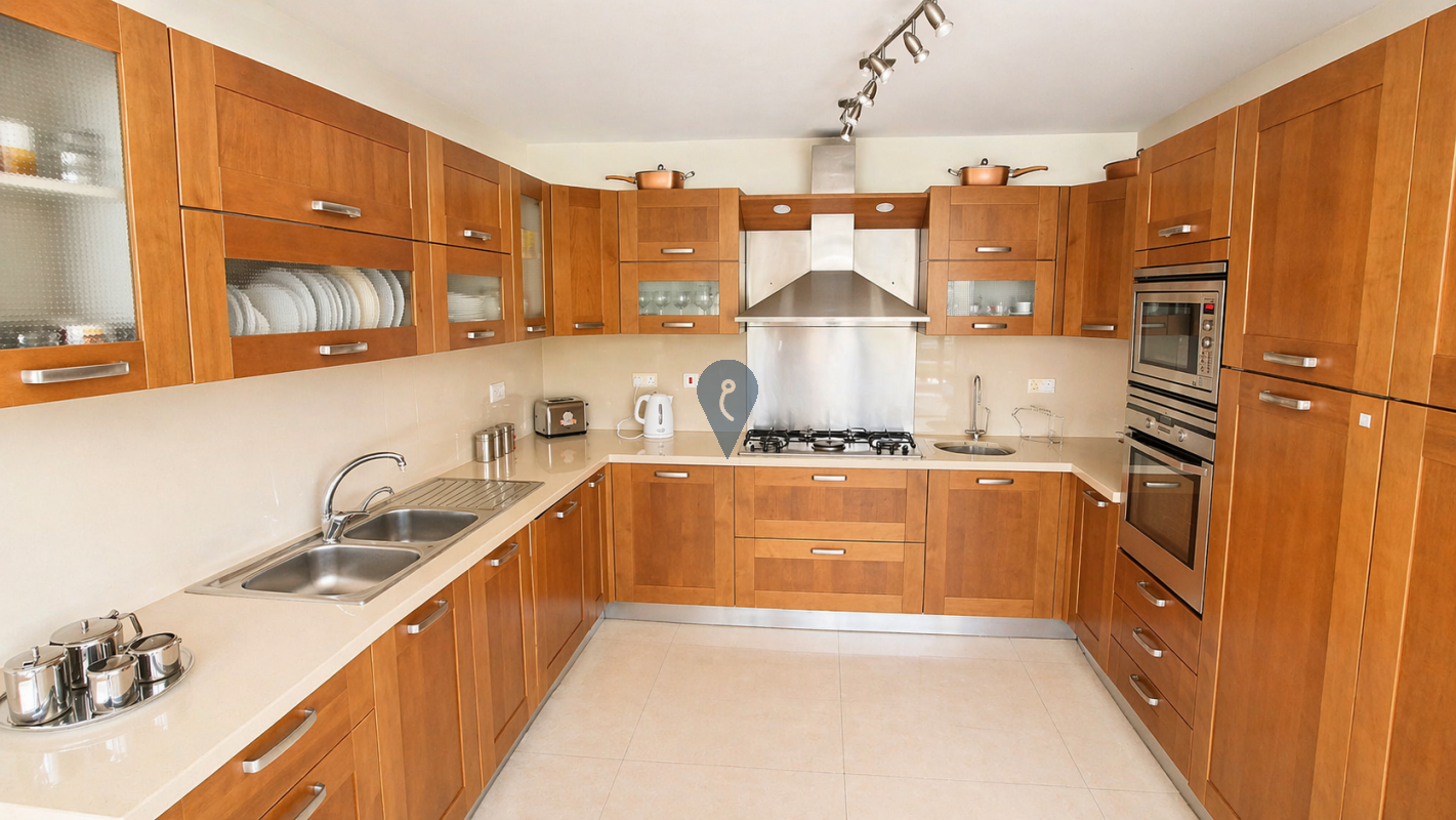 The layout features an inviting entrance hall leading into a bright, spacious open-plan kitchen, living, and dining area. This space opens effortlessly onto the expansive terrace, ideal for entertaining guests or unwinding while enjoying the sea views.