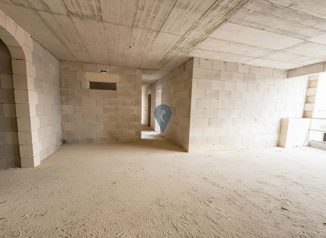 The apartment is already built and is being offered in shell form, allowing the buyer to finish and customise the interior to their own taste and requirements.