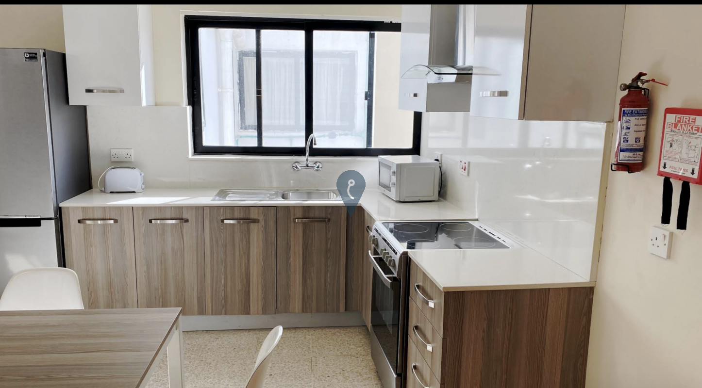 Each apartment is move-in ready and equipped with TV, water heater, washing machine, and a spacious combined kitchen, living, and dining area with satellite TV channels. Kitchens are fully equipped, and all apartments are fully air-conditioned throughout.