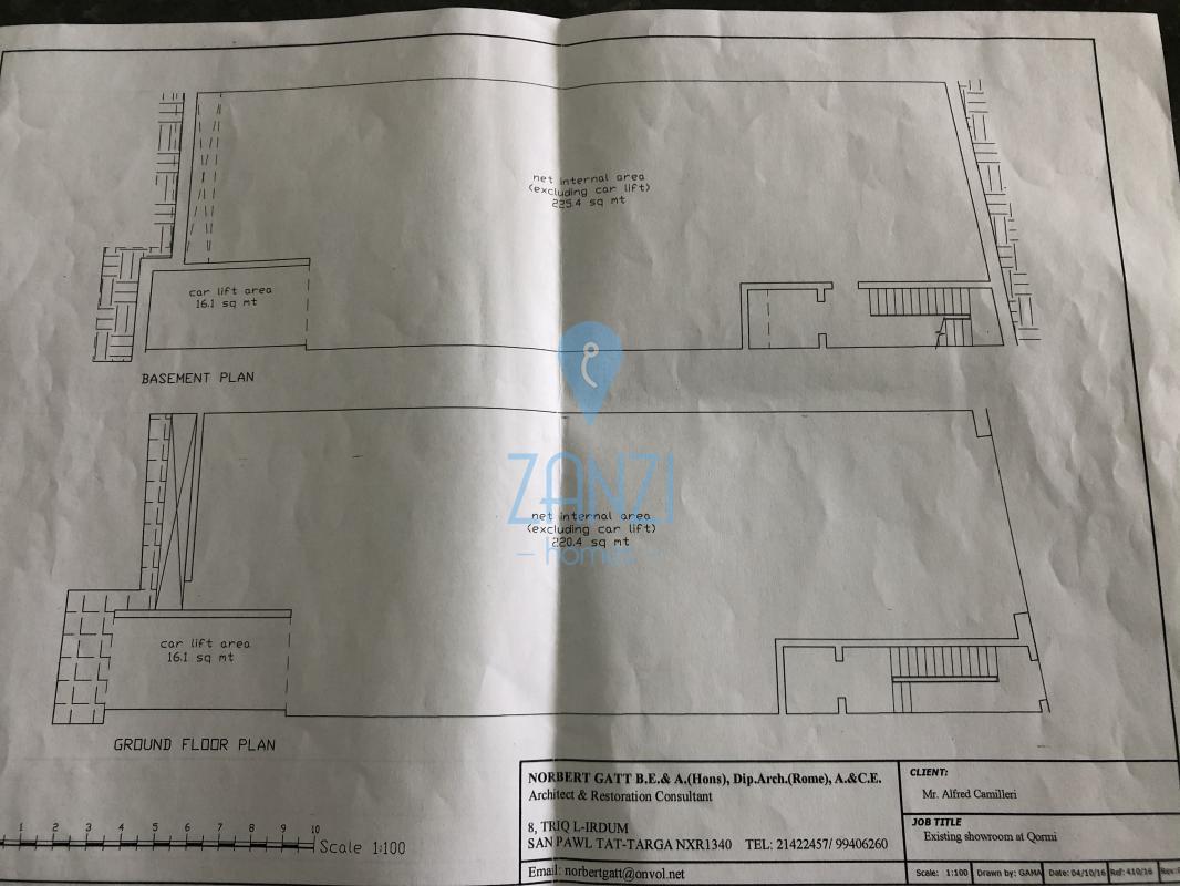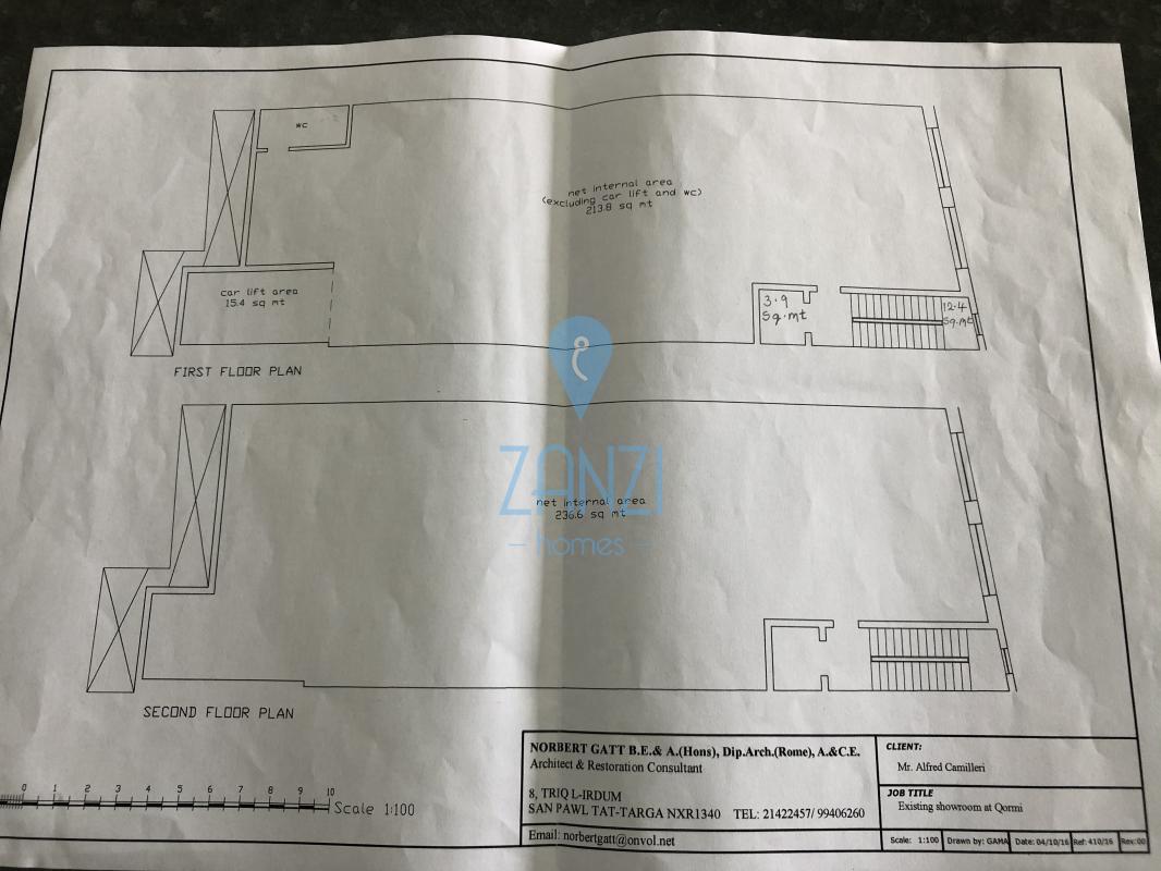 QORMI- Large open spaces with basement in an excellent location. Access from front and back road. Private Parking available. Consists of a large garage at ground level and two floors above it space for two lifts available; one of which is an industrial lift. Airspace for two additional floors included in the price. Class 4B and 4A permits in hand.